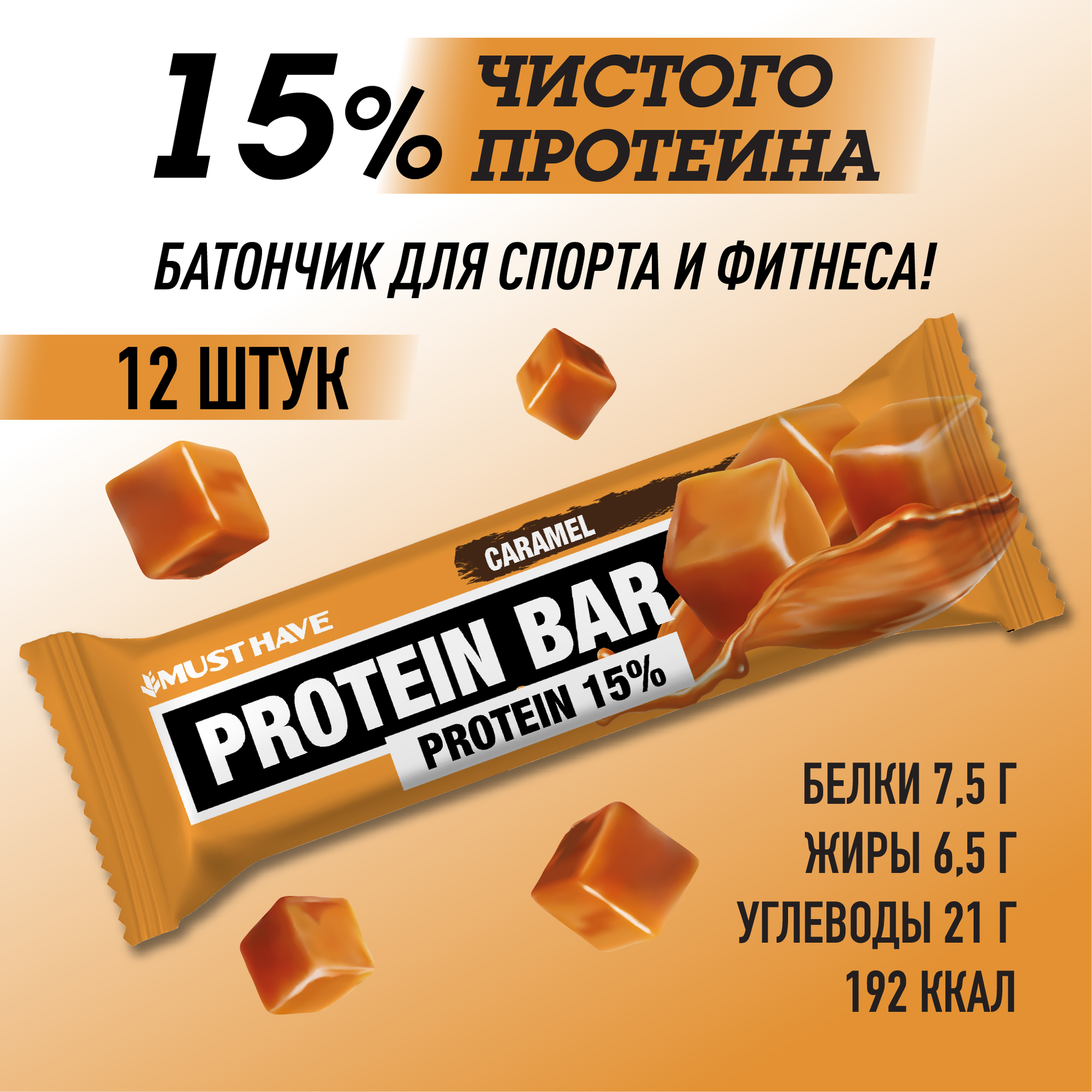 Протеиновые батончики Must Have "Карамель" 12 штук по 50гр информация: