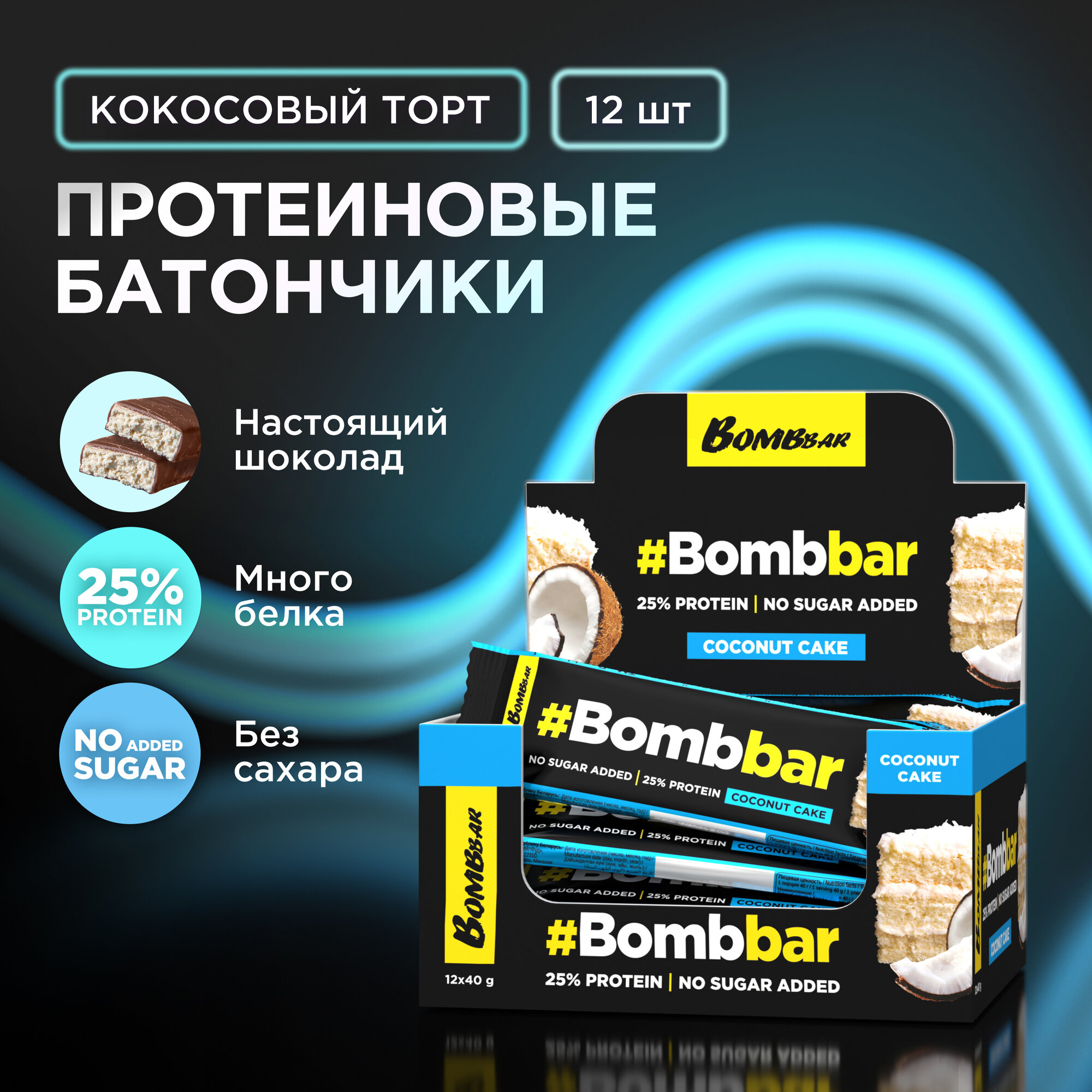 10 цен на Bombbar Протеиновые батончики в шоколаде без сахара Кокосовый торт, 12шт х 40г