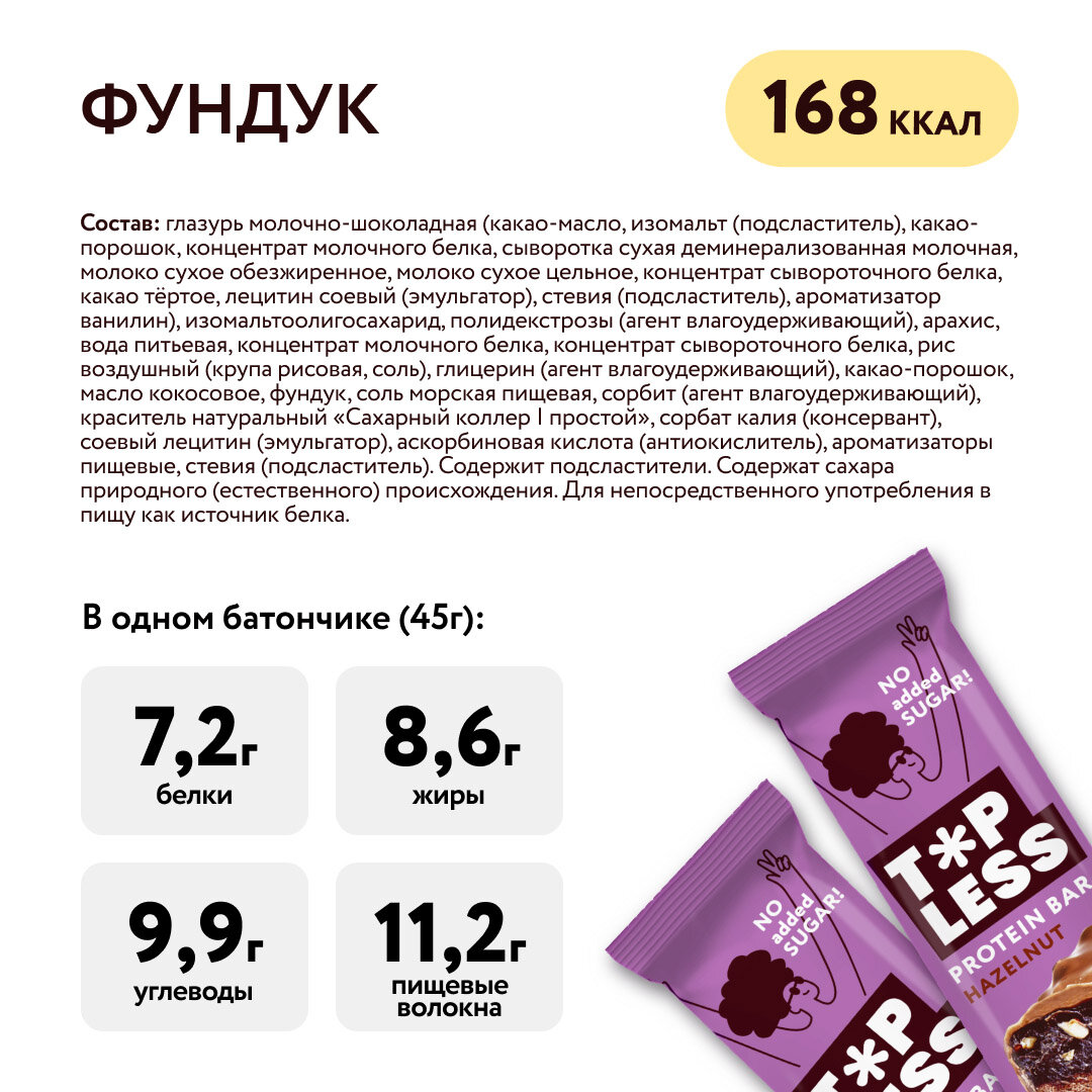 Протеиновые батончики без сахара FitnesSHOCK TOPLESS ассорти все вкусы 12 шт информация: