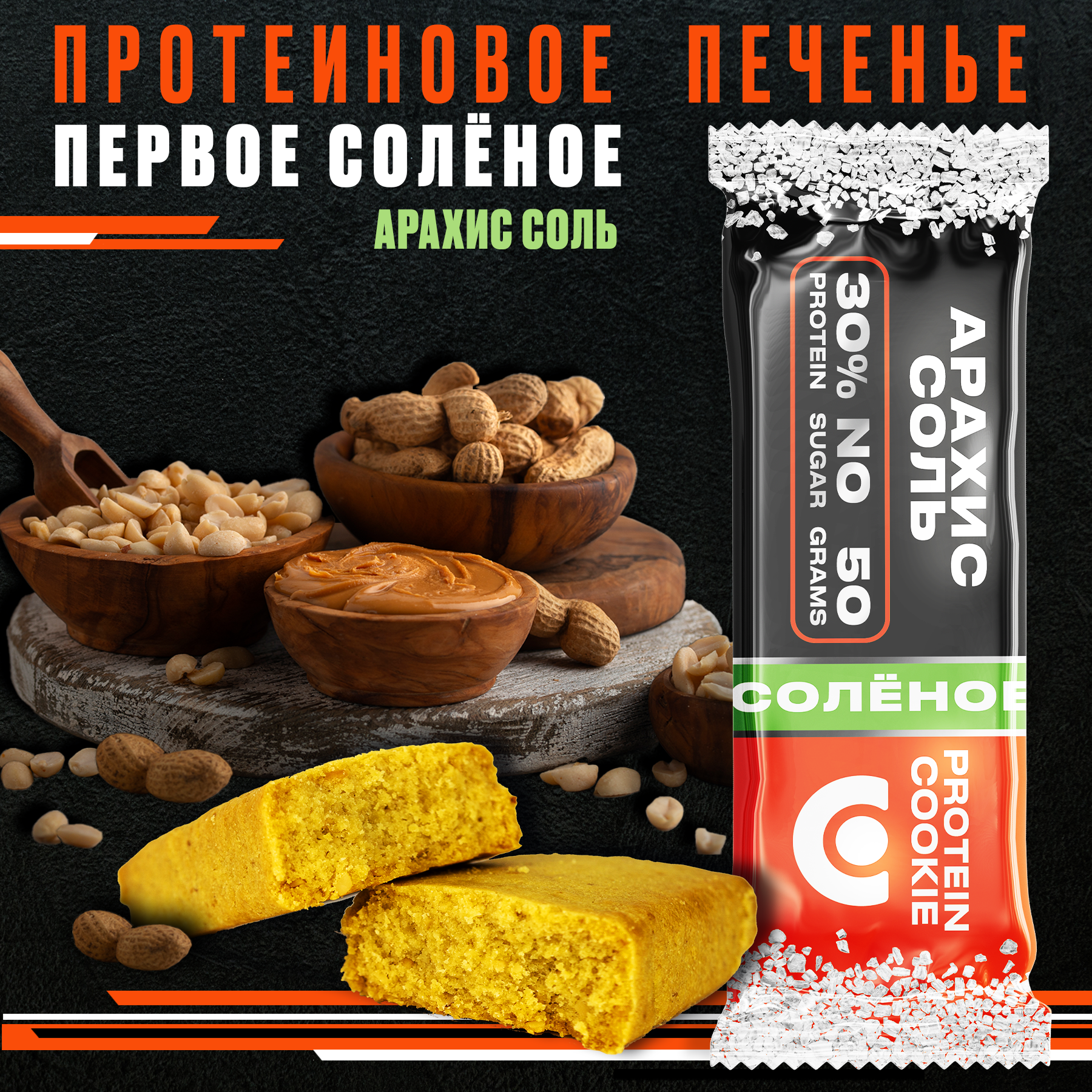 Протеиновое печенье Первое солёное в форме батончика от PureProtein, 30% белка, Арахис Соль, 12 шт по 50г информация: