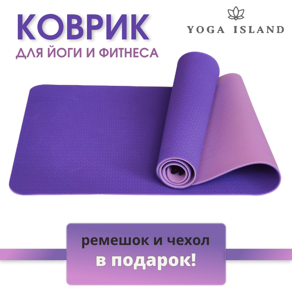 10 цен на Коврик для йоги и фитнеса Yoga Island, нескользящий, ТПЕ, 0.6 см, 183×61 см, фиолетовый