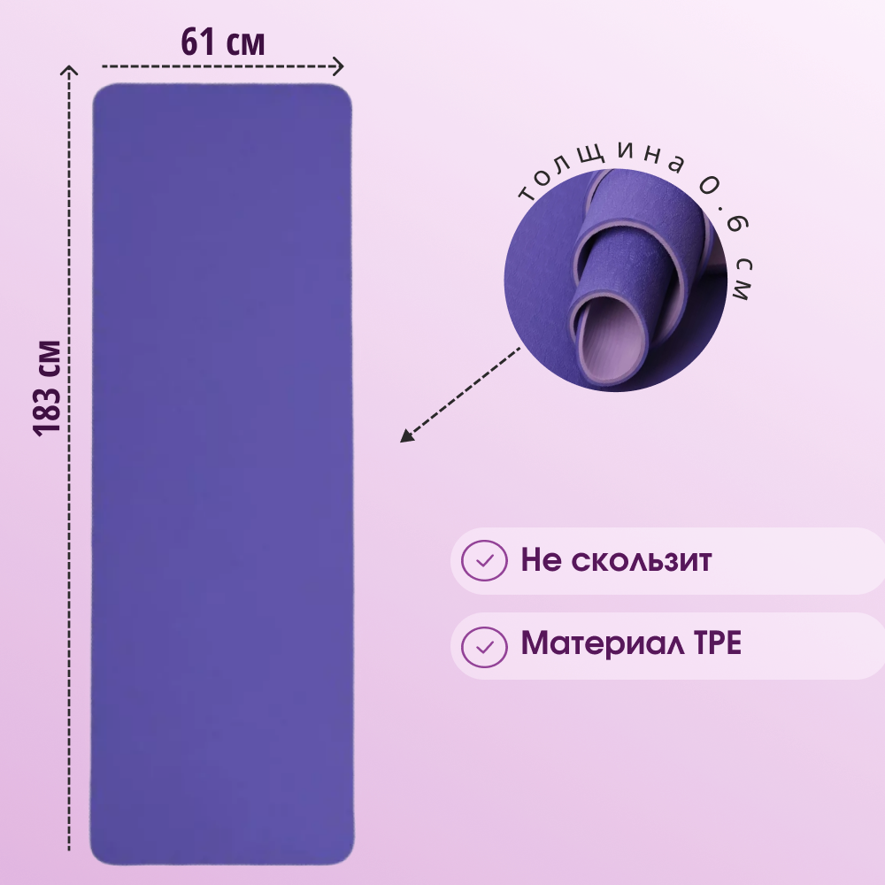 Коврик для йоги и фитнеса Yoga Island, нескользящий, ТПЕ, 0.6 см, 183×61 см, фиолетовый информация: