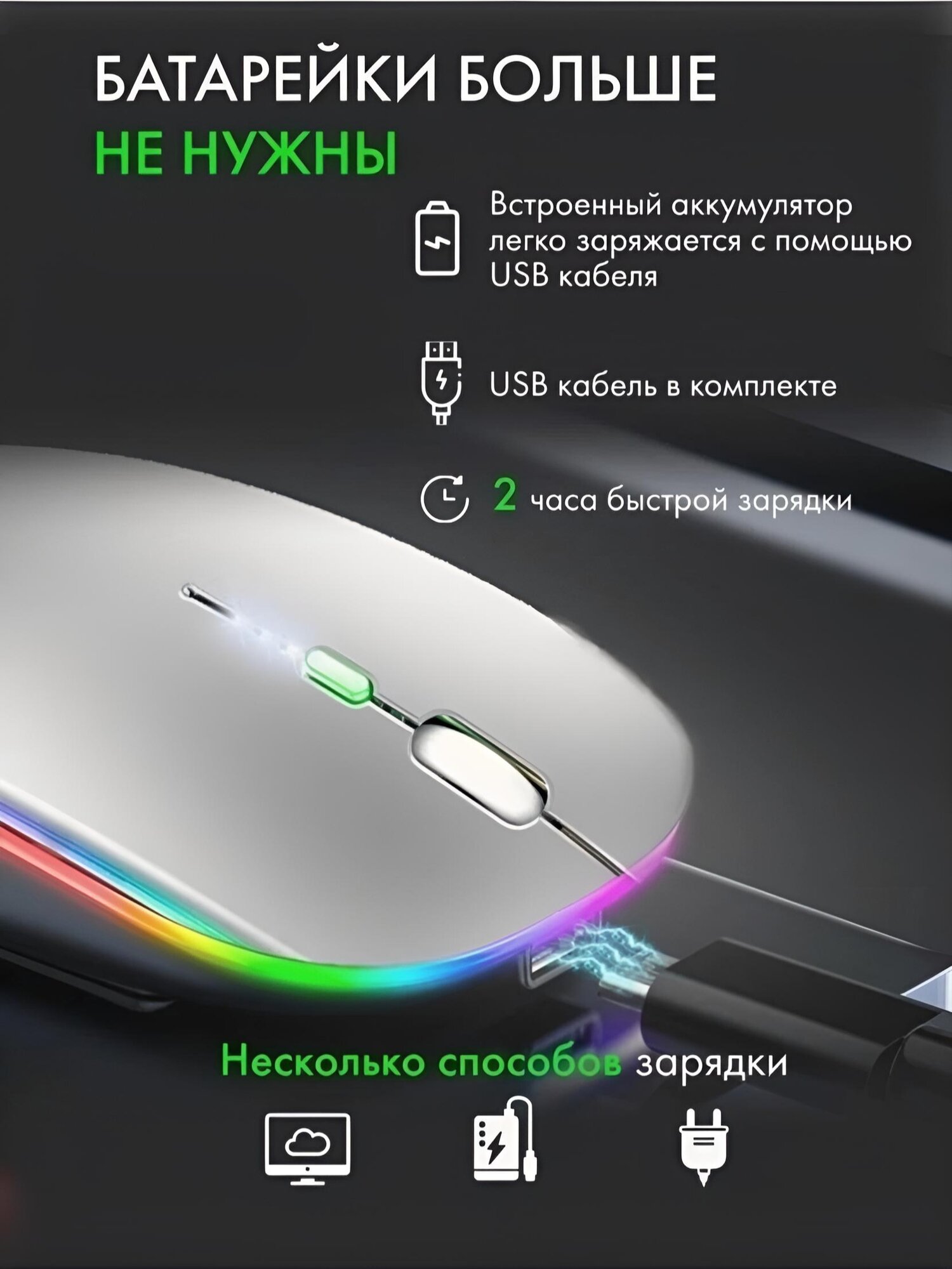 Мышь беспроводная для ноутбука бесшумная, игровая, оптическая с подсветкой. информация:
