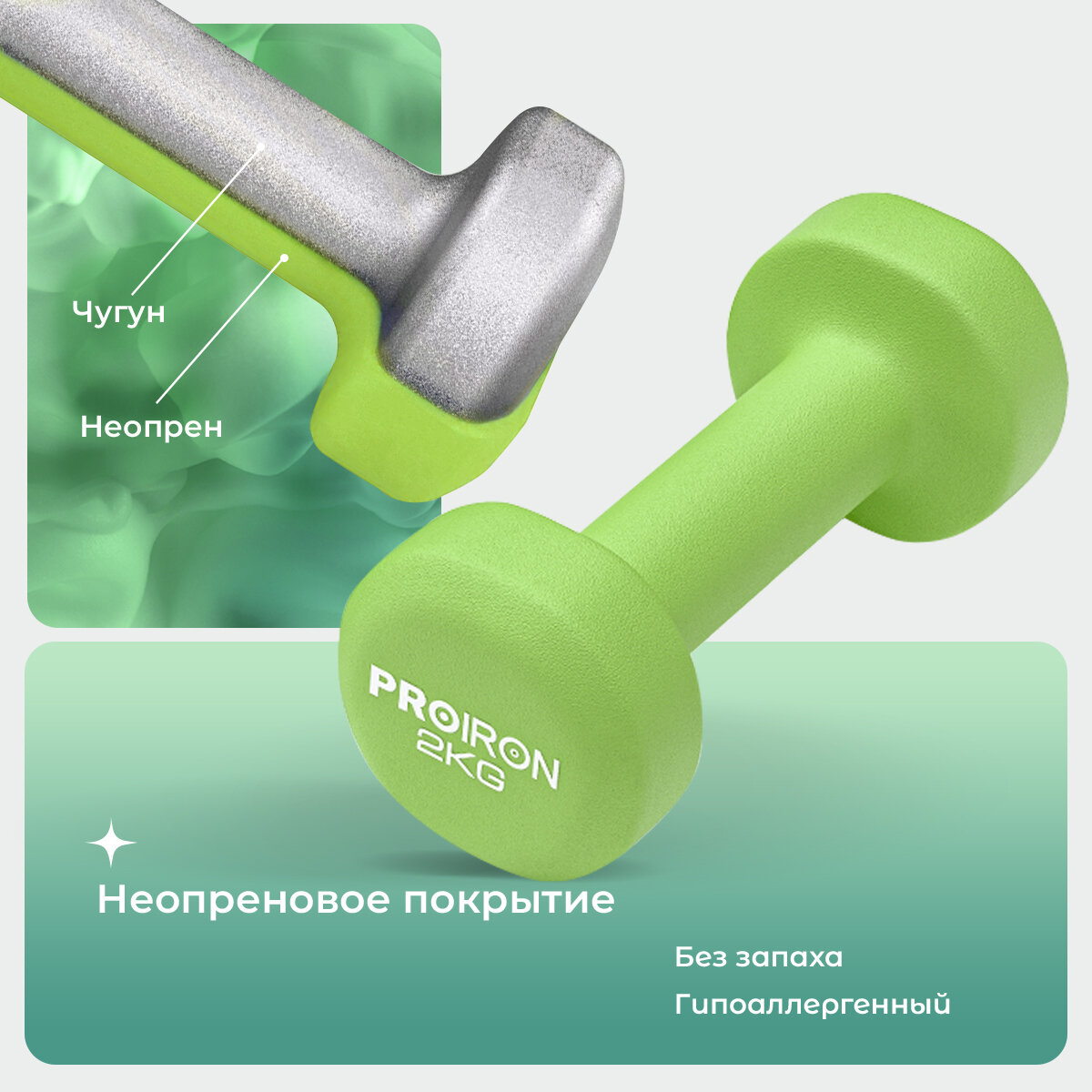 Гантели 2 кг 2 штуки неопреновые PROIRON, набор для фитнеса, салатовые информация: