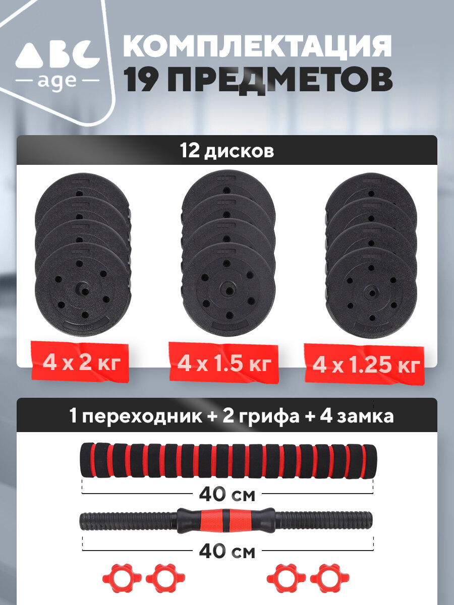 10 цен на Набор 20кг разборных гантель AbcAge 2х10кг + гриф для штанги