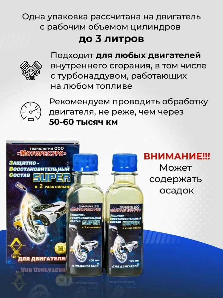 Отзывы на Присадка Моторесурс SUPER для двигателя до 3,0 л мощности, 200 мл