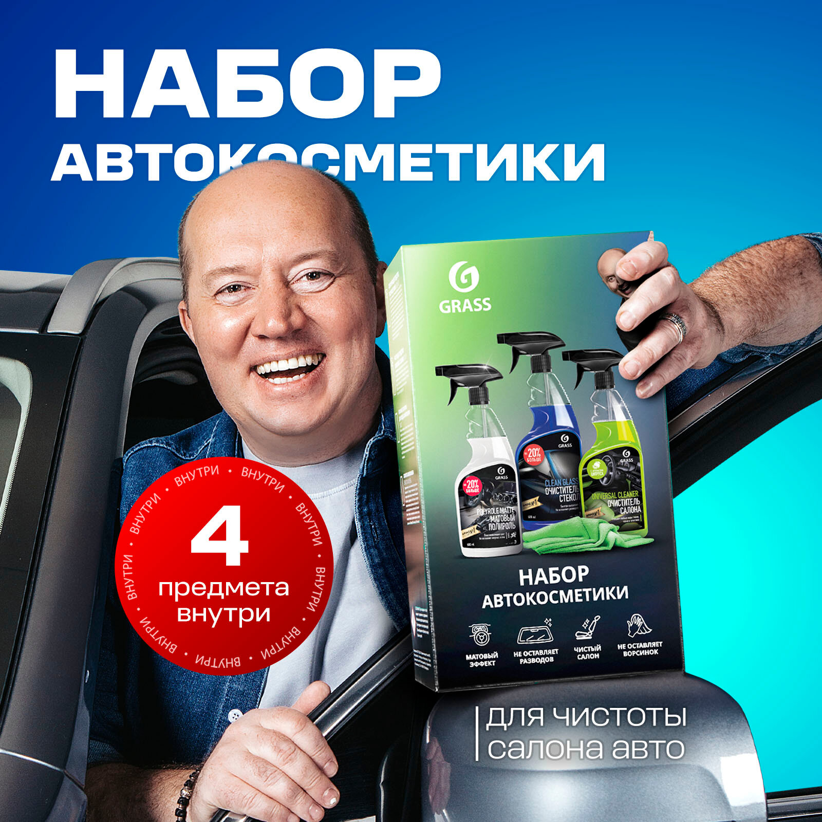 10 цен на Подарочный набор автохимии для ухода за салоном Grass очиститель салона 600мл, очиститель стекол 600мл, полироль 600 мл