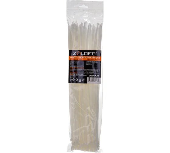 Стяжка кабельная (хомут стяжной пластиковый) ZOLDER, 370х4,8мм, нейлон ,белая (100 шт.)