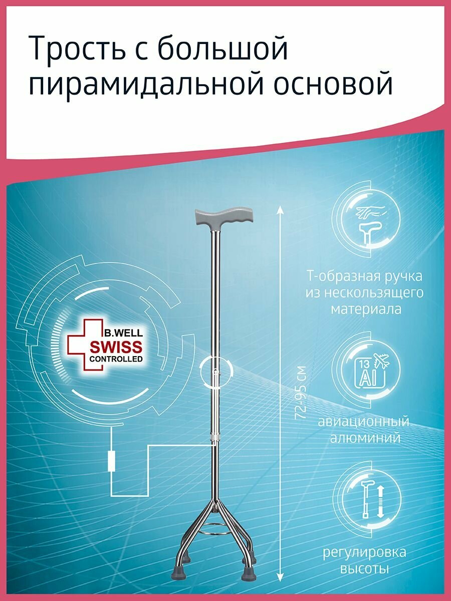 10 цен на Трость опорная B.Well WR-421, для пожилых людей, для ходьбы, ортопедическая с большой пирамидальной опорой