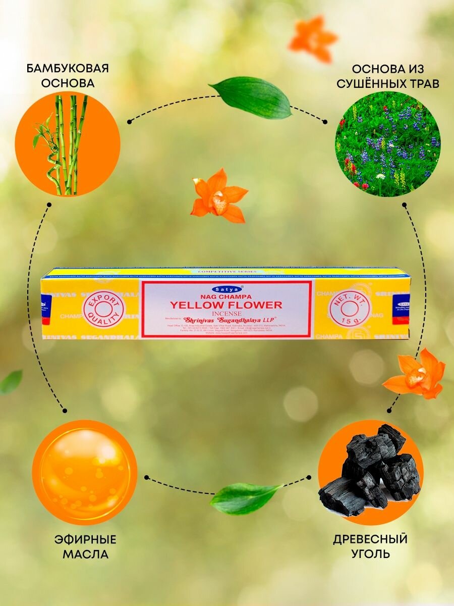 10 цен на Благовония Satya Yellow Flower (Желтый Цветок) 15гр.