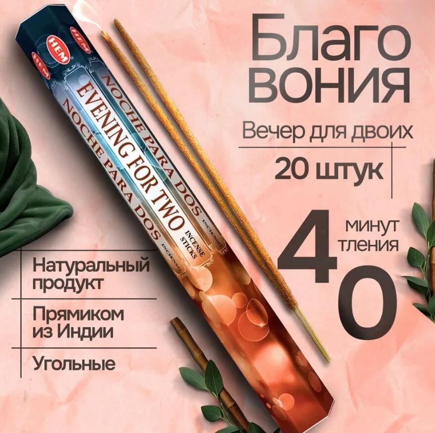Благовония HEM Evening for Two (Вечер для двоих) Роза, шоколад, кофе, ваниль, 20 палочек информация: