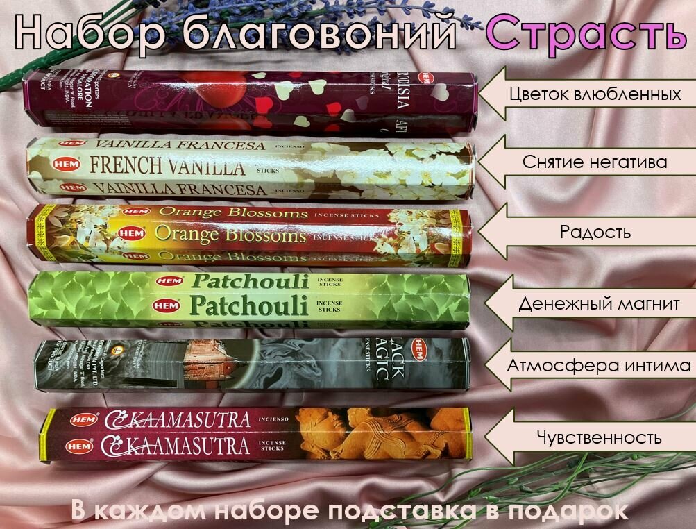 Набор благовоний НЕМ Страсть (6 вариантов по 20 палочек + подставка в подарок) №4 информация: