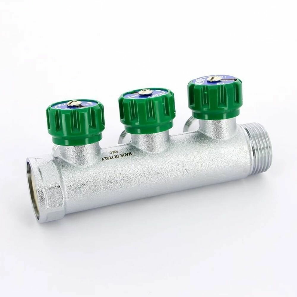 Коллектор FAR 1"х3/4" 3 выхода под плоскую прокладку хромированный с вентилями