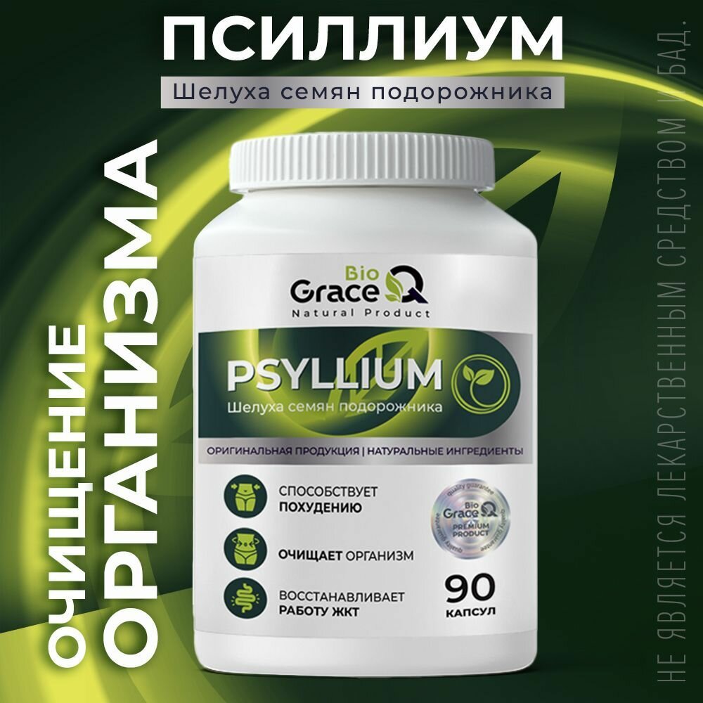 10 цен на Псиллиум GraceBioQ в капсулах, шелуха подорожника, клетчатка для похудения, детокса, от запоров 90 капсул.