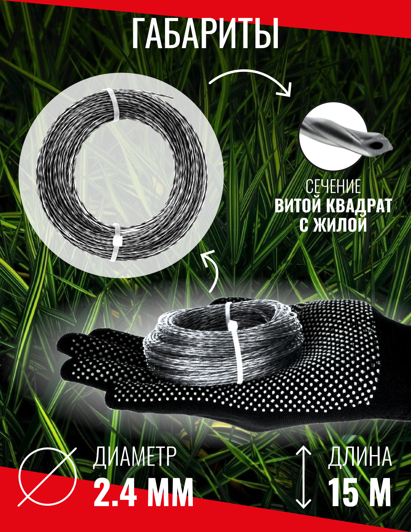 Леска витой квадрат с жилой 2,4х15м, чеглок информация: