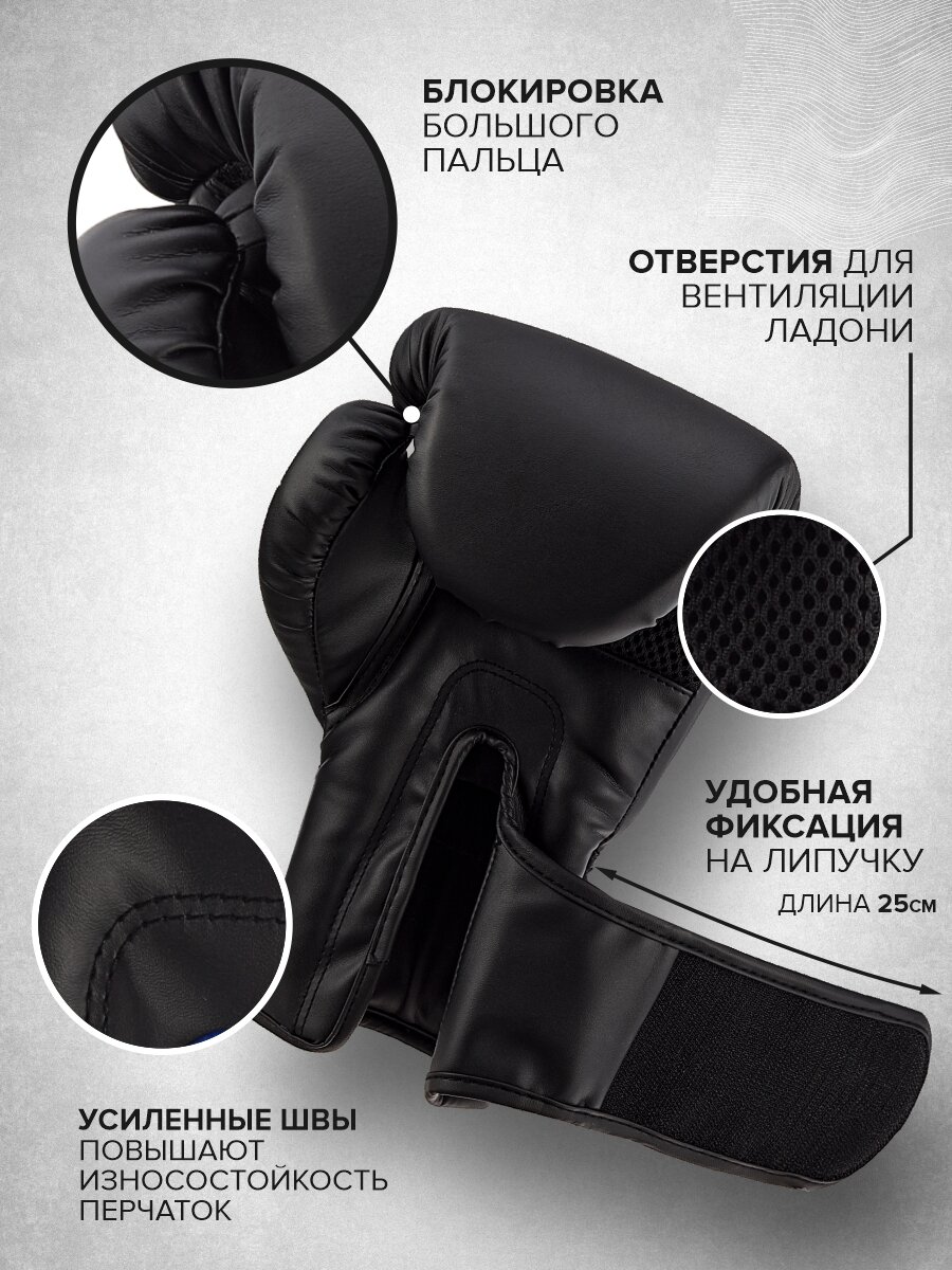 Боксерские перчатки Panther Energy Series Lighting, синяя/черная, искусственная кожа, 8 Унций 2 190 ₽