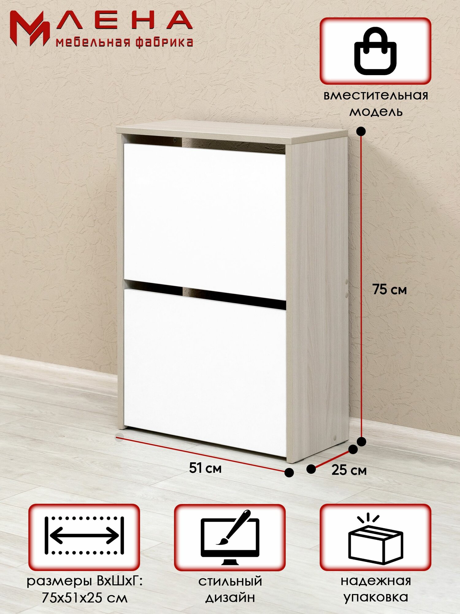 Тумба для обуви, обувница в цвете ясень шимо светлый информация:
