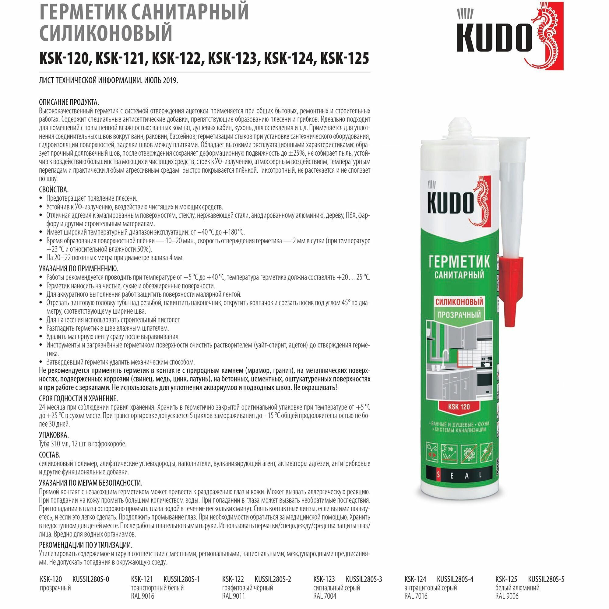 Кудо Герметик KSK 121 силиконовый санитарный белый (280мл) информация: