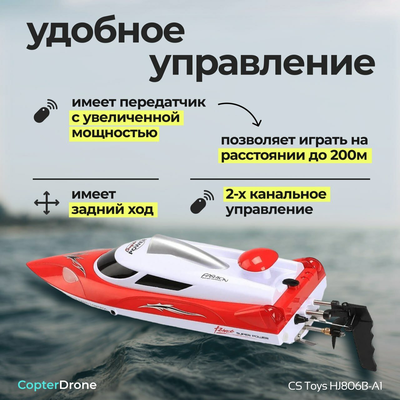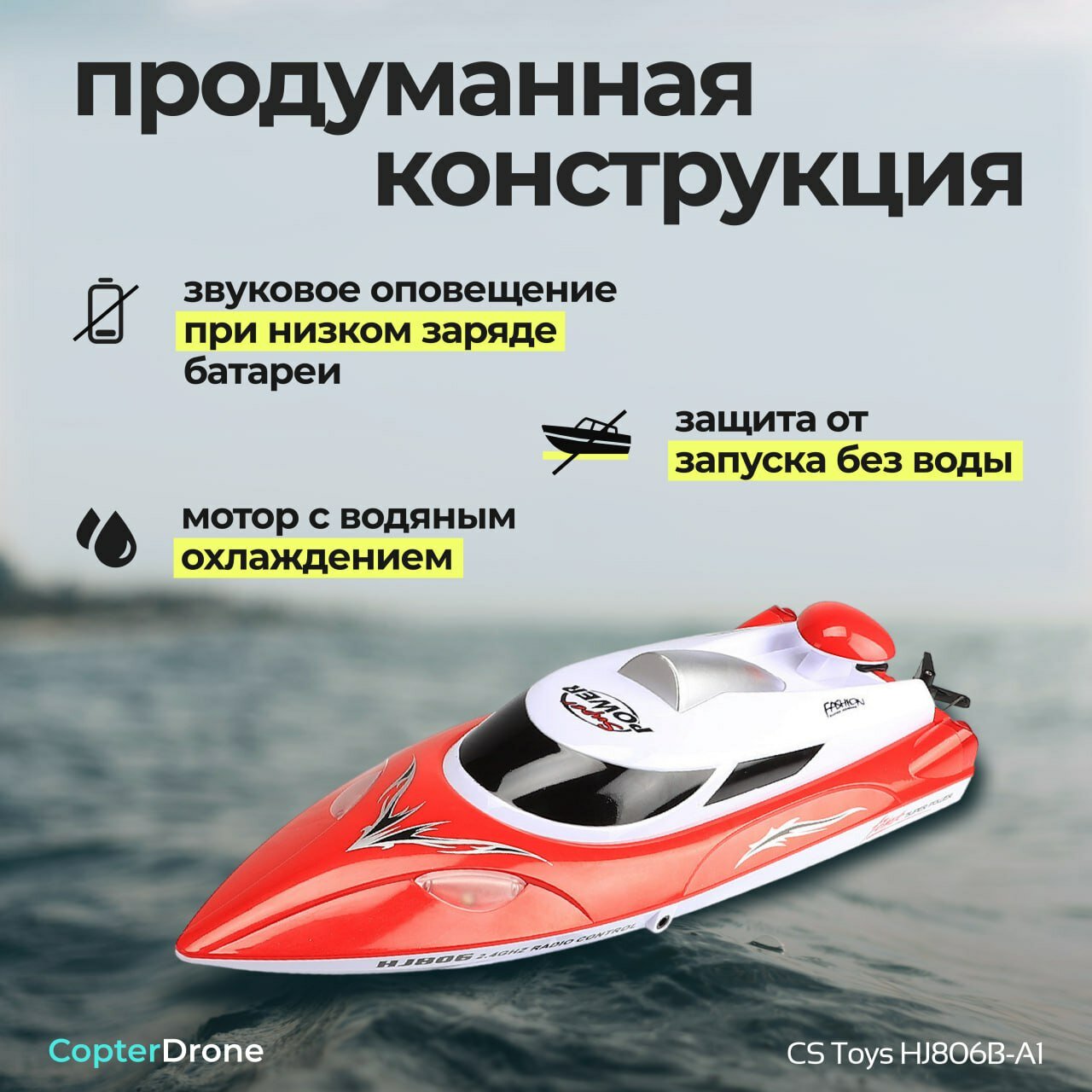 Отзывы на Другие катера и корабли CS Toys Радиоуправляемый катер Red SuNew (47 см, 35 км/ч, акб 3000 mAh, 2.4G) - HJ806B-A1