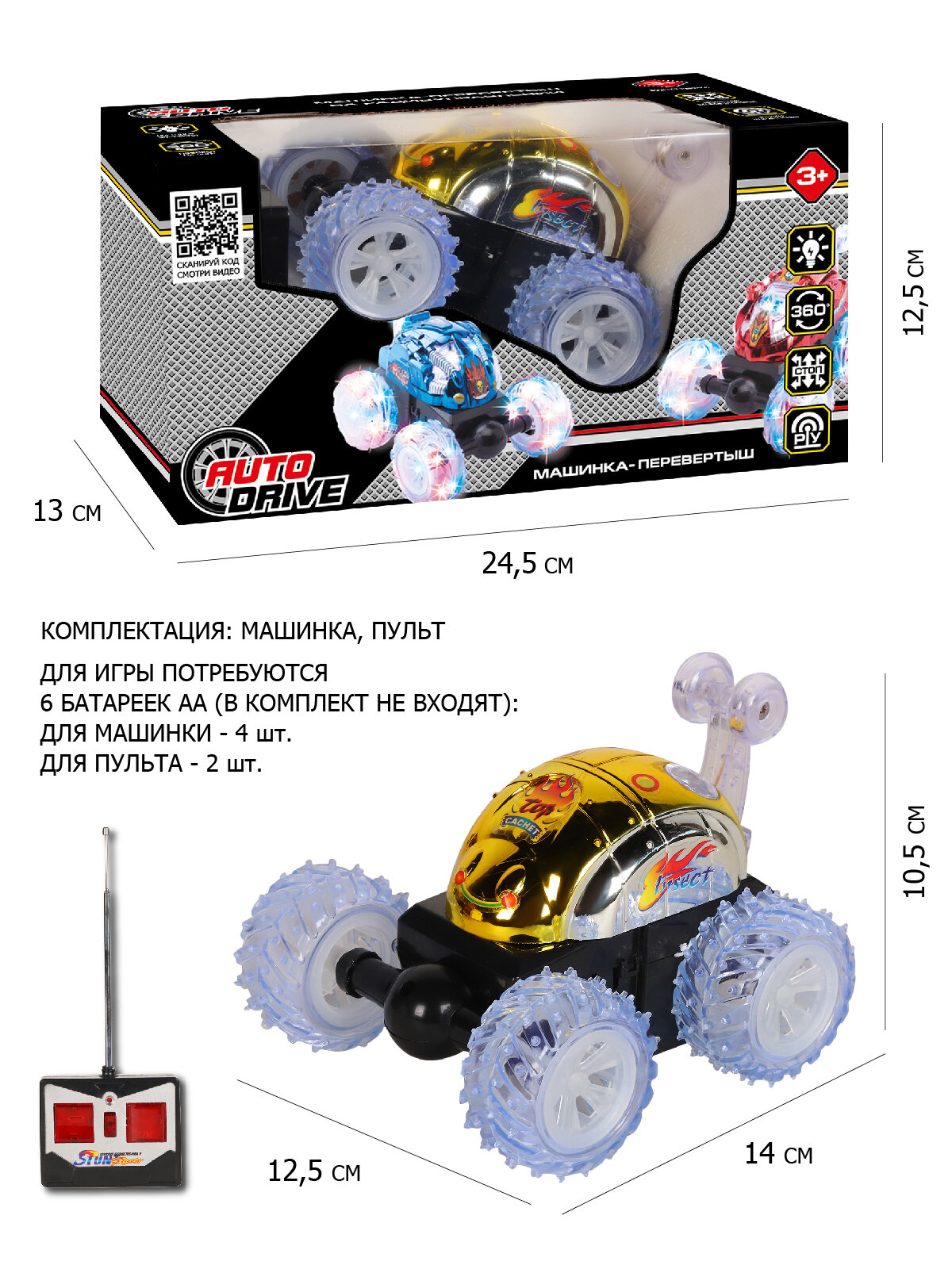 Игрушка на радиоуправлении AUTODRIVE перевертыш 4 канала для выполнения трюков подсветка корпуса с пультом JB1168168 4 230 ₽