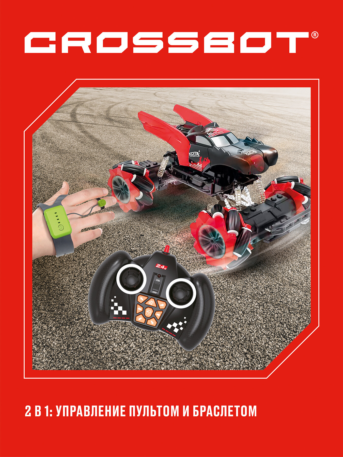 Отзывы на Машинка на радиоуправлении Crossbot Крылья, 2в1 управление пультом и браслетом, дрифт, движение боком