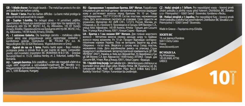 | Комплектация | Станок для бритья BIC Metal с одним лезвием, 10 шт. |