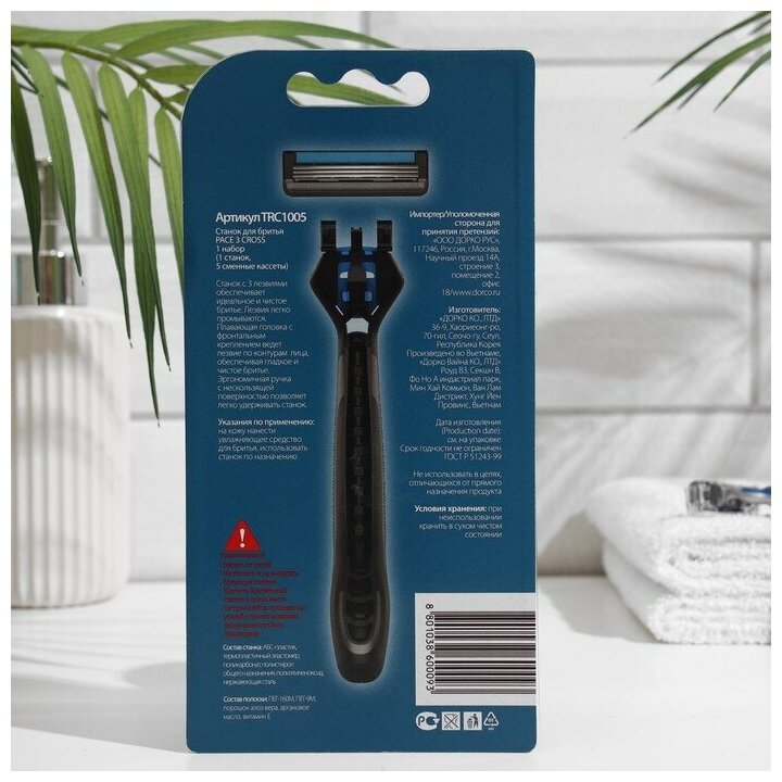 DORCO Pace CROSS 3 бритвенный станок + 5 кассет CROSS с 3 лезвиями, TRC 1005 информация: