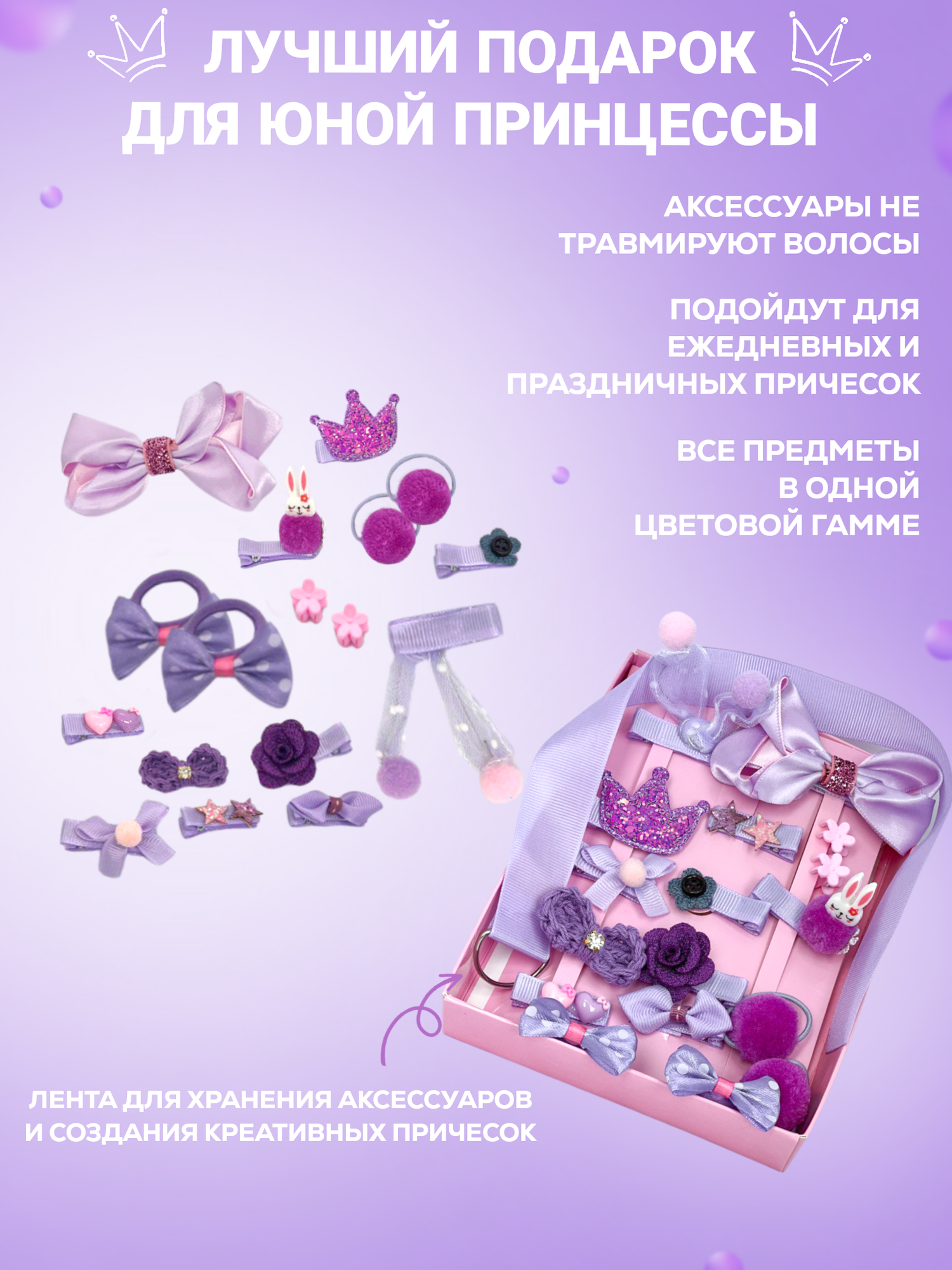 10 цен на Сиреневый набор резинок и заколок для девочек / Детские резиночки бантики для девочки в школу, садик / Резинки для волос