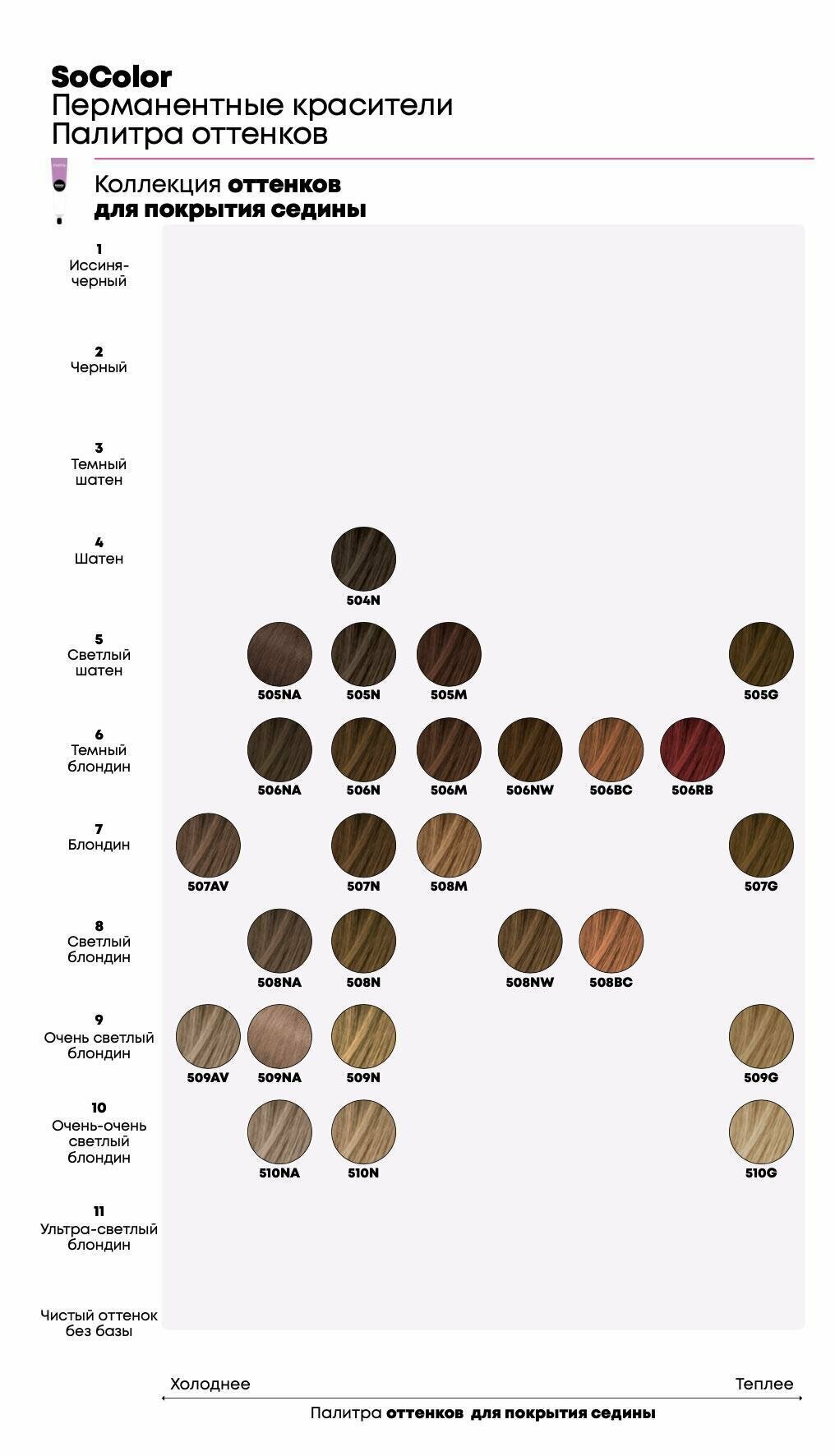 | Комплектация | Перманентный краситель SoColor Pre-Bonded коллекция для покрытия седины, 90 мл |