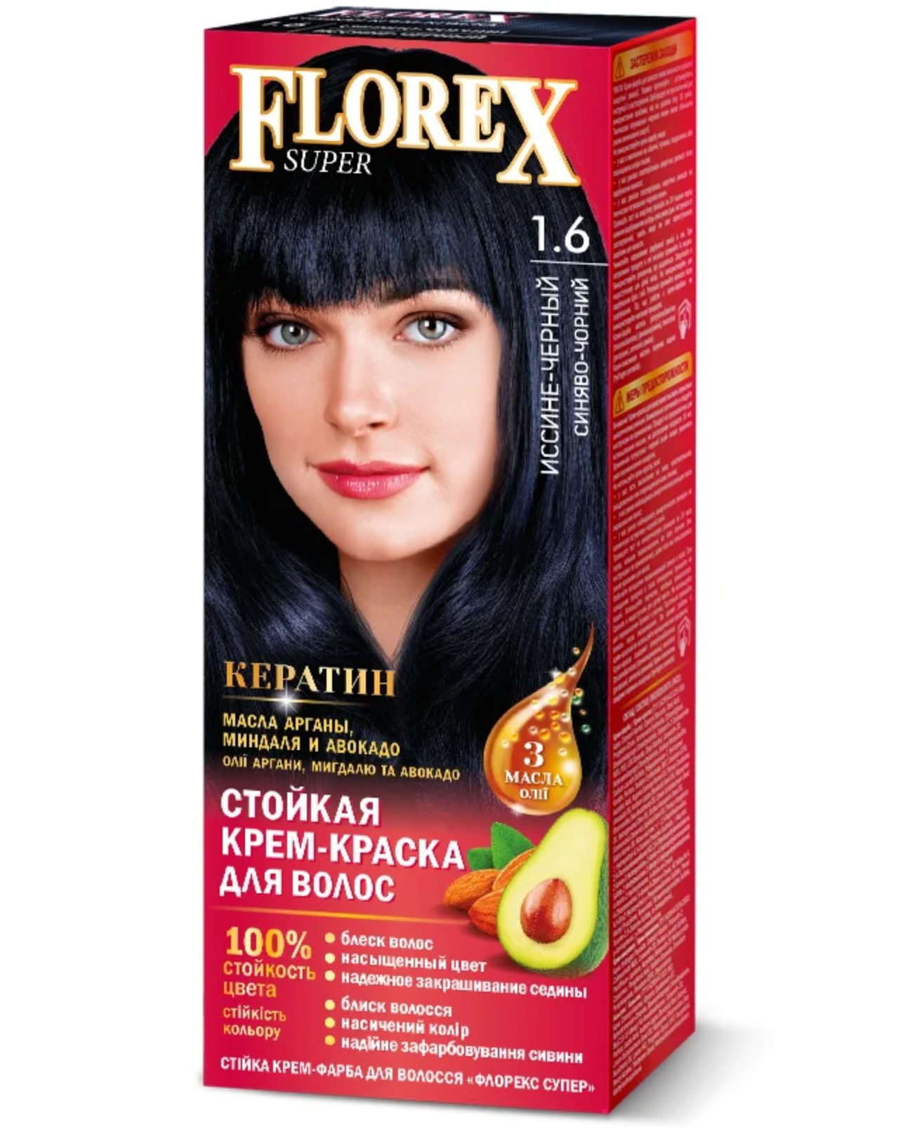 Florex Florex Super стойкая крем-краска, 1.6 иссине-черный