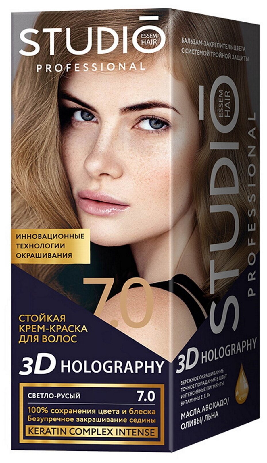 STUDIO PROFESSIONAL Краска для волос 3D Golografic, Тон 7.0 Светло-русый, 115 мл