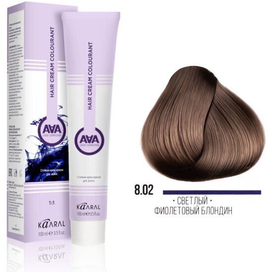 Kaaral AAA стойкая крем-краска для волос, 8.02 светлый фиолетовый блондин, 100 мл информация: