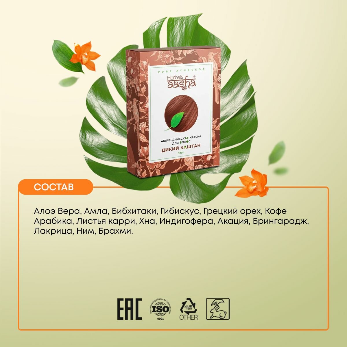 Aasha Herbals Краска для волос аюрведическая, Дикий каштан, 100 г информация: