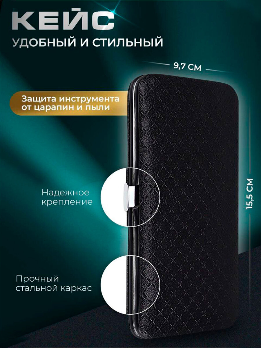 | Состав набора | апельсиновая палочка, книпсер, косметическая петля, кусачки, кусачки для кутикулы, кусачки для маникюра, кусачки для педикюра, лезвия, ножницы, ножницы для кутикулы, ножницы для ногтей, ножницы для педикюра, пилка, пилка педикюрная, пинцет, пушер для кутикулы, разделитель для пальцев, скребок |
