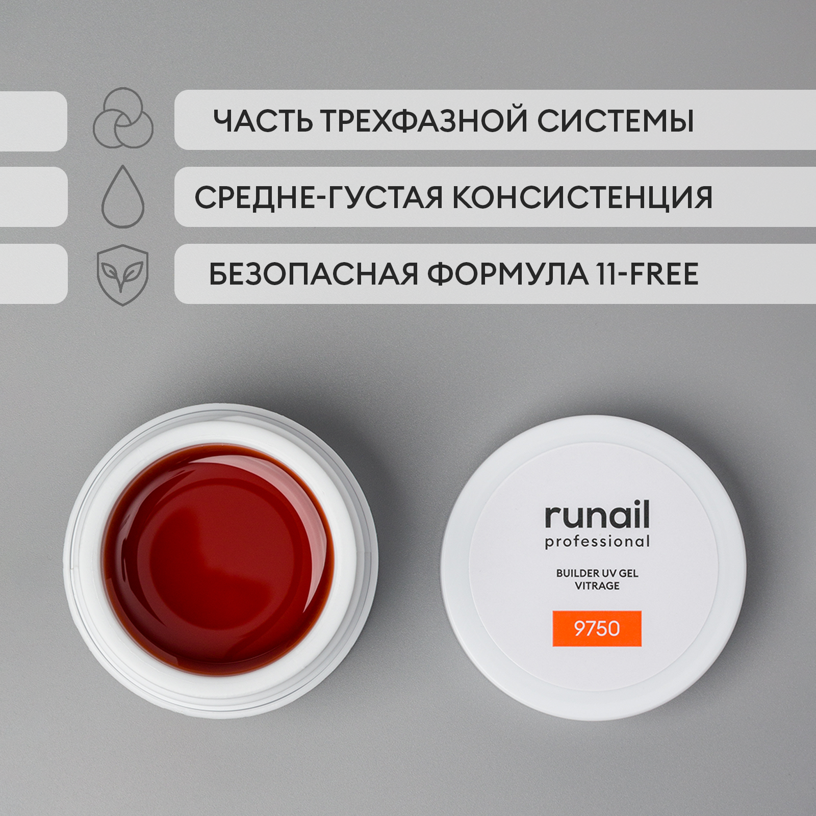 RuNail, BUILDER UV GEL VITRAGE - моделирующий УФ-гель витражный №9748, 15 гр 497 ₽