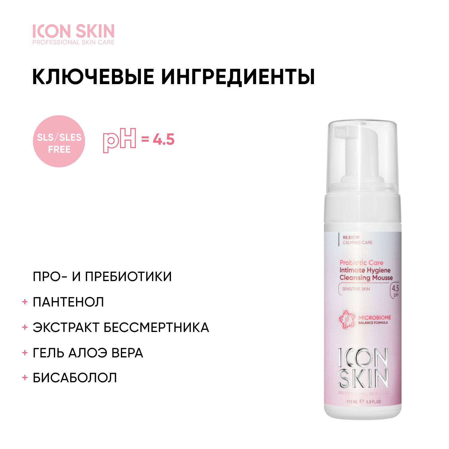 Мусс для интимной гигиены бессульфатный с пребиотиком и пробиотиком для чувствительной кожи ICON SKIN RE:BIOTIC, 175 мл информация: