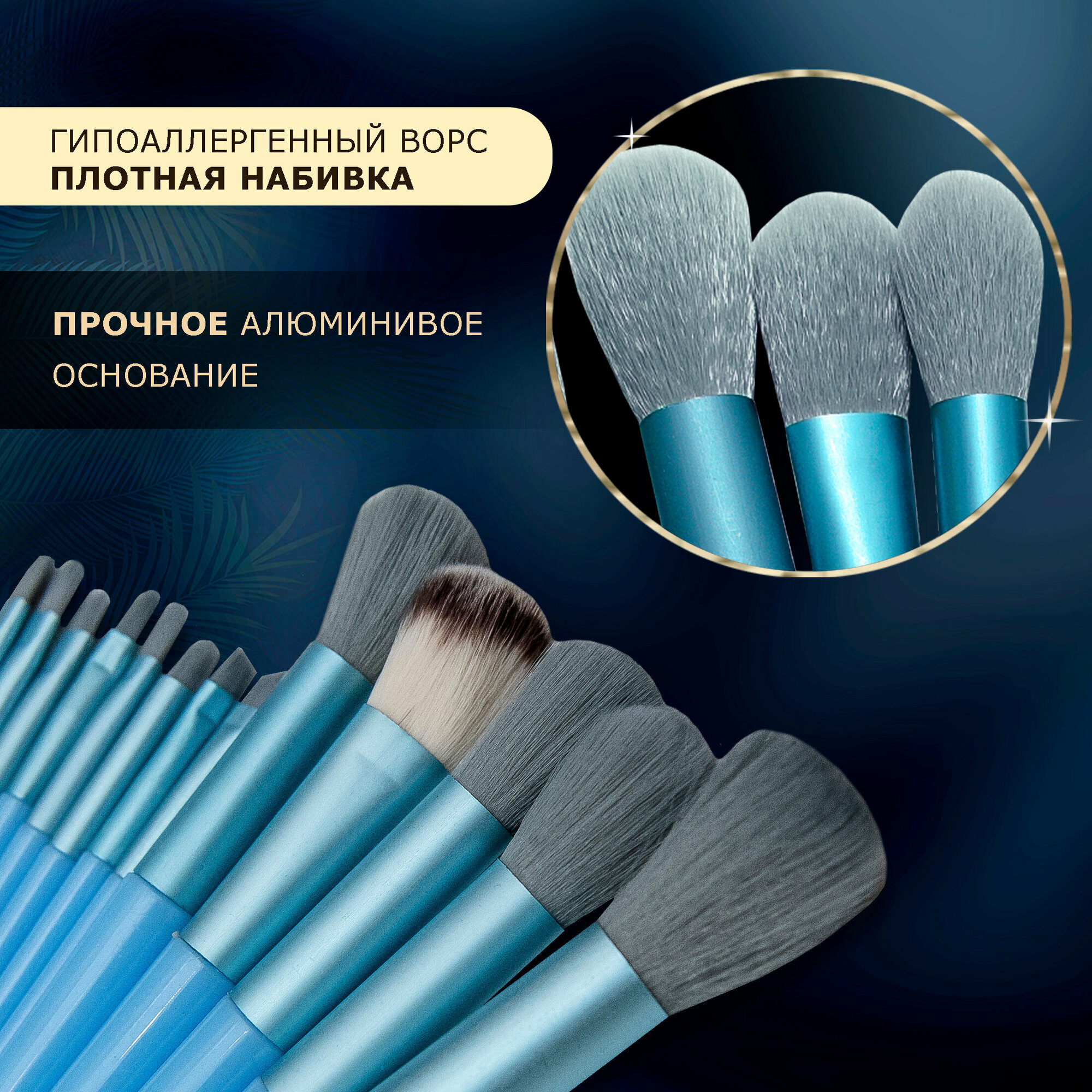 Набор кистей для макияжа 13 штук. Цвет голубой. информация: