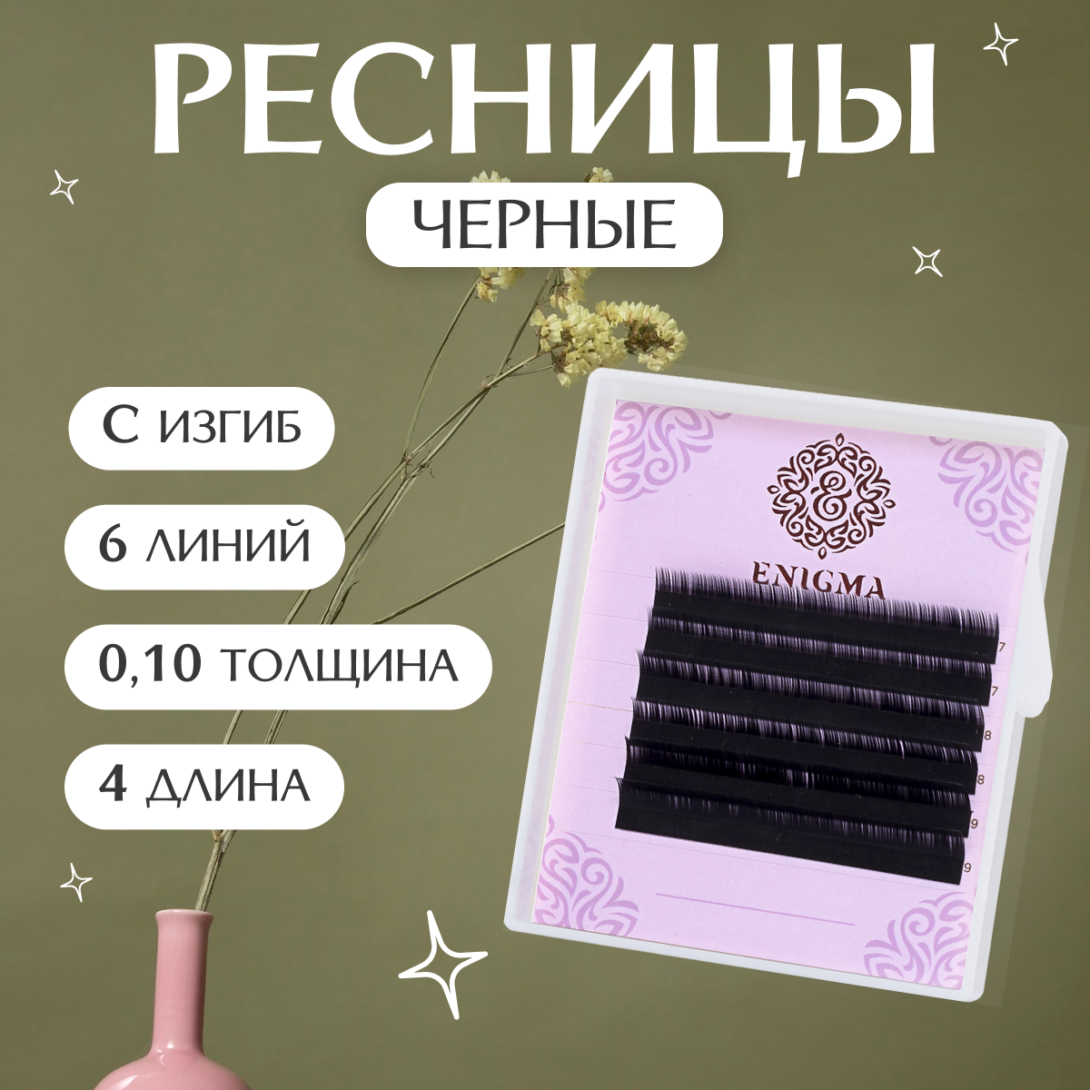 Ресницы Enigma MINI, M, 0.10, 7 mm, 6 линий