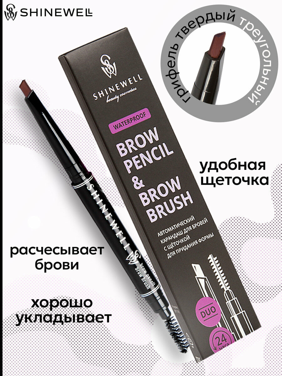SHINEWELL Автоматический карандаш для бровей с щёточкой для придания формы, коричневый, 14 г