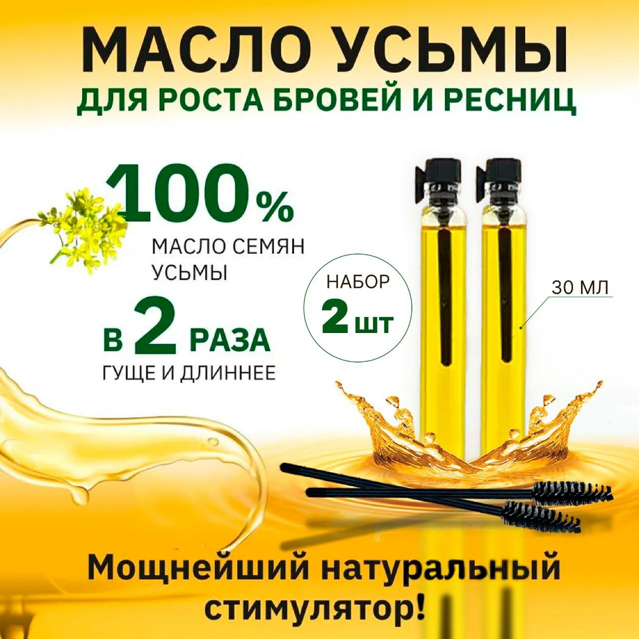 10 цен на 3 мл х 2 шт. Масло усьмы для роста бровей и ресниц