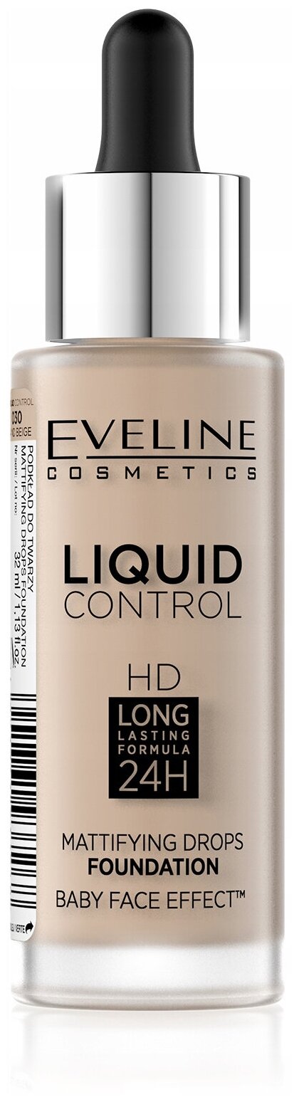 Тональная основа Eveline Liquid Control, инновационная, жидкая, 010, light beige, 32 мл