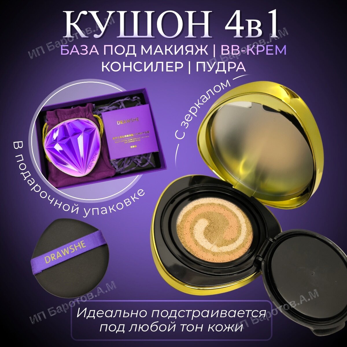 Отзывы на Бриллиантовый крем-кушон для лица DRAWSHE 4 в 1 в подарочном комплекте, фиолетовый