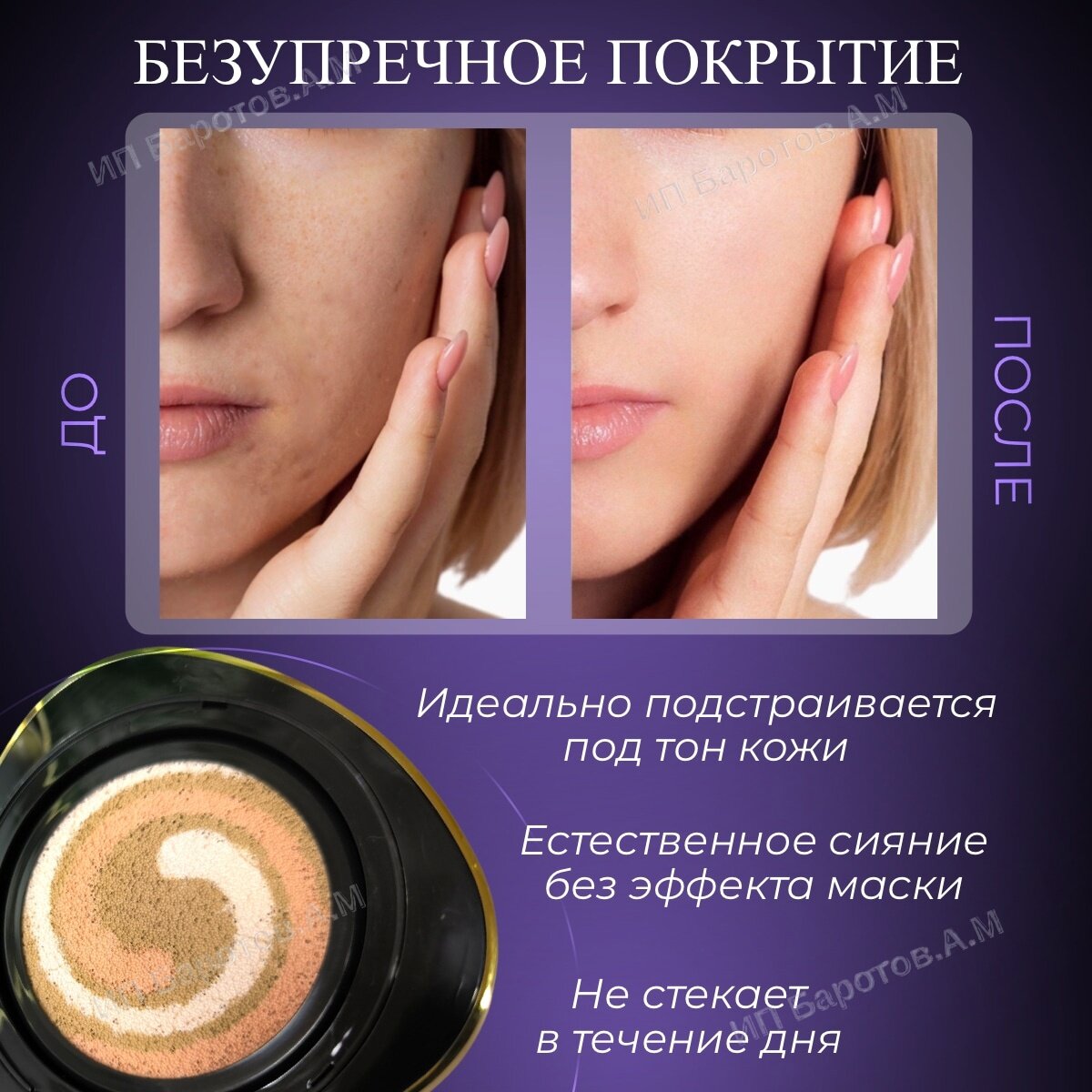 Бриллиантовый крем-кушон для лица DRAWSHE 4 в 1 в подарочном комплекте, фиолетовый информация: