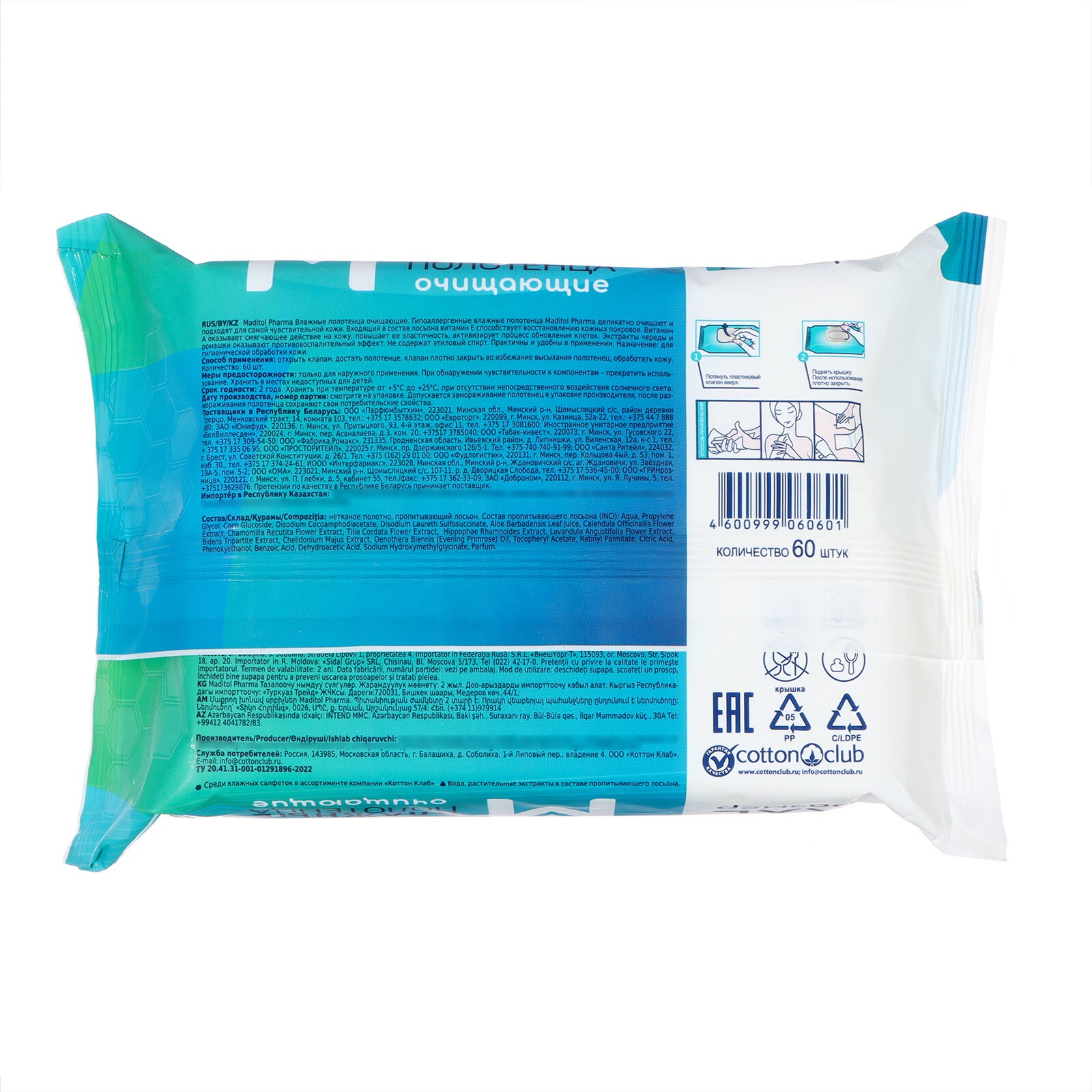 "Maditol" - гипоаллергенные влажные салфетки и полотенца 60 шт. информация: