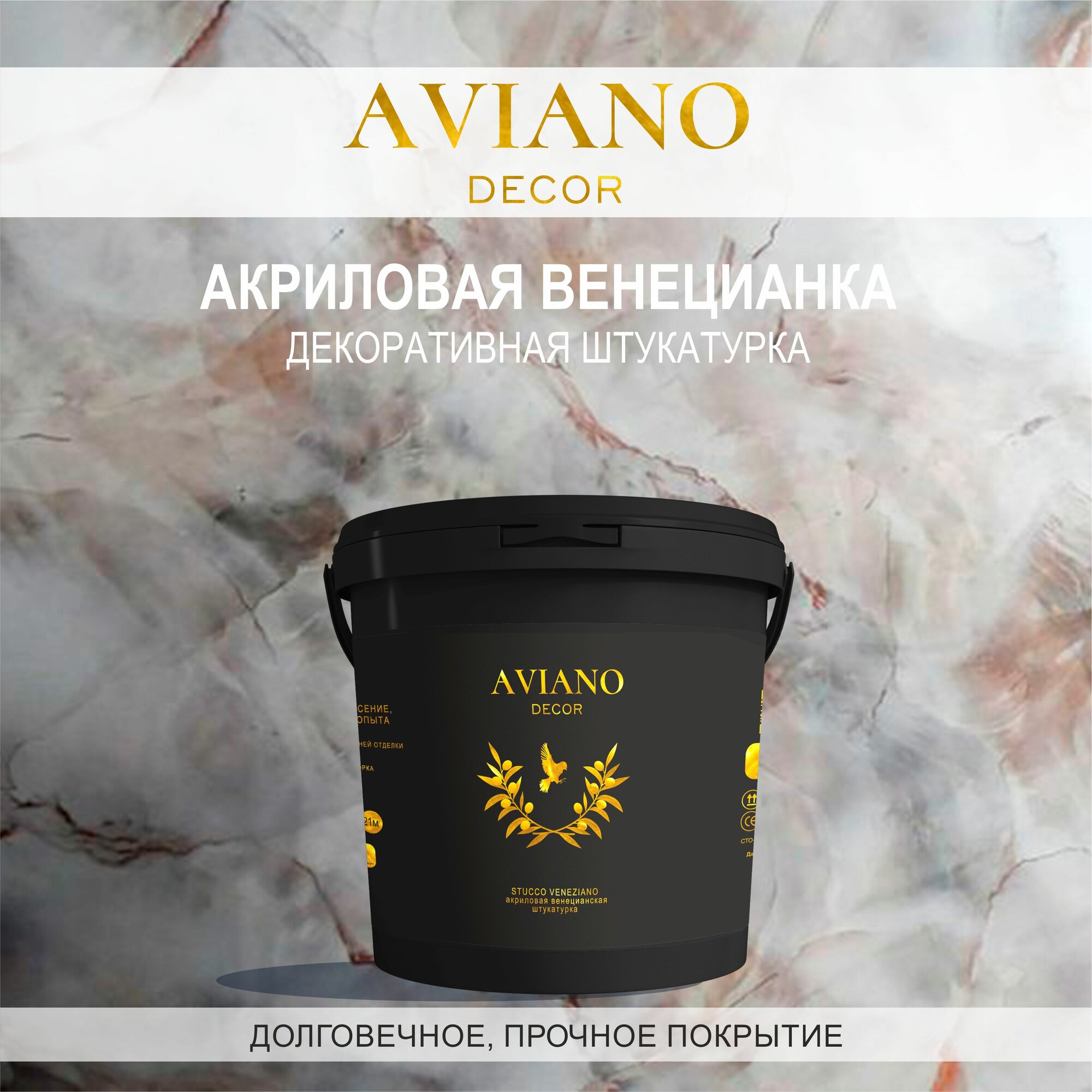 Венецианская декоративная штукатурка с эффектом натурального мрамора Stucco Veneziano от AVIANO DECOR 800гр (пробник) 500 ₽