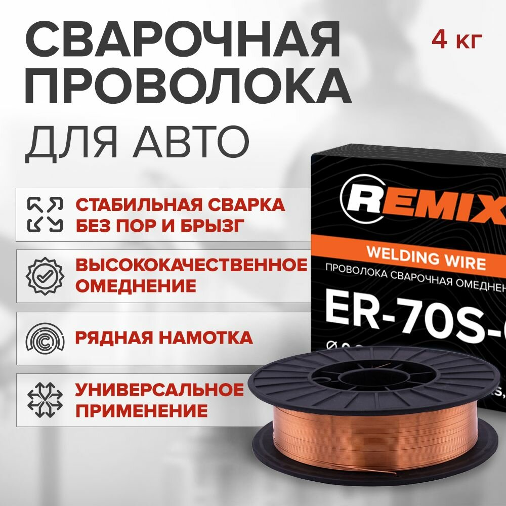 Проволока для сварки REMIX 0,8 мм 4 кг / омедненная сварочная проволока / PROV04 информация: