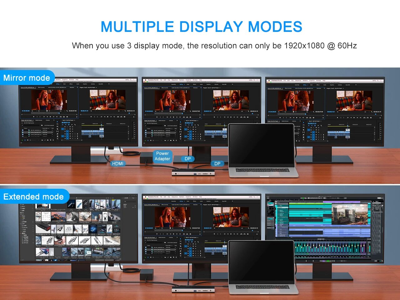10 цен на Док-станция USB-C для ноутбуков с тройным дисплеем, MST, 4K/60 Гц, USB 3,0, RJ45, Ethernet для Mac OS, Windows, Wavlink, UMD01