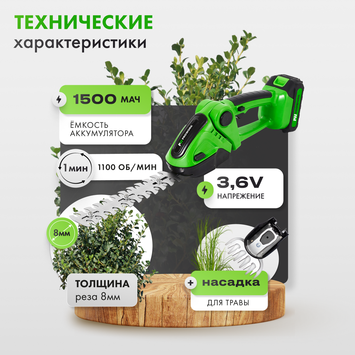 Отзывы на Садовый кусторез аккумуляторный/ аккумуляторные ножницы садовые/кусторез электрический/Мощный триммер для травы PROWORK/перчатки/ 2 насадки для кусов и травы