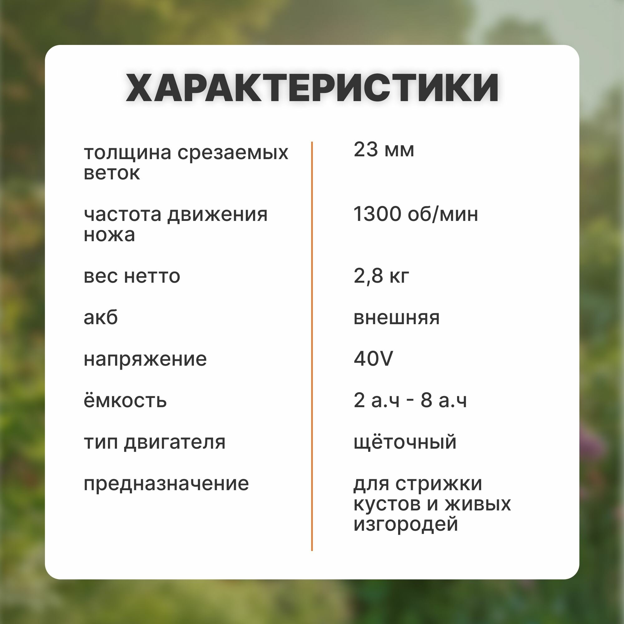 Кусторез аккумуляторный садовый VILLARTEC HA40 информация: