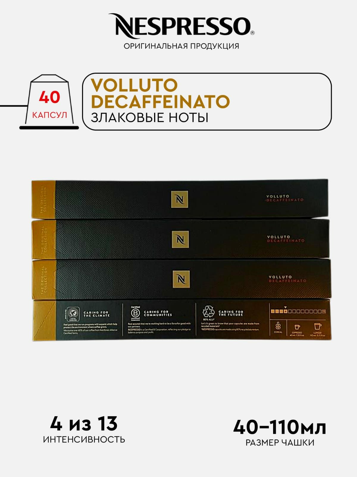 Кофе в капсулах, Nespresso, Набор, volluto decaffeinato, молотый кофе в капсулах, для капсульных кофемашин, оригинал, неспрессо , 40шт информация: